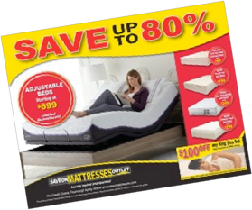 SaveOnMattress.com Logo / In-Store Signage / Direct mail